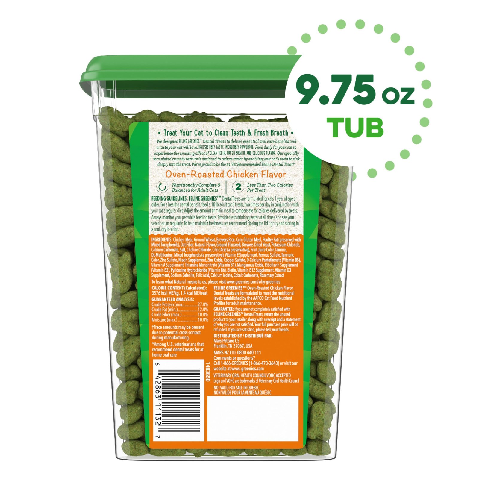 Brand Name: Greenies Product Name: Greenies Feline Adult Dental Cat Treats, Oven Roasted Chicken Flavor, 9.75 oz. Tub